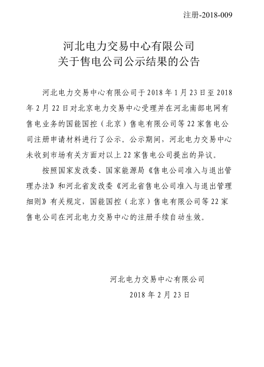 河北增22家售電公司