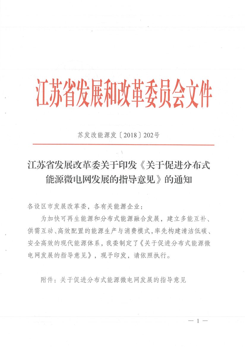 江蘇省發(fā)展改革委關(guān)于印發(fā)《關(guān)于促進(jìn)分布式能源微電網(wǎng)發(fā)展的指導(dǎo)意見》的通知,為加快可再生能源和分布式能源融合發(fā)展,制定出臺關(guān)于促進(jìn)分...
