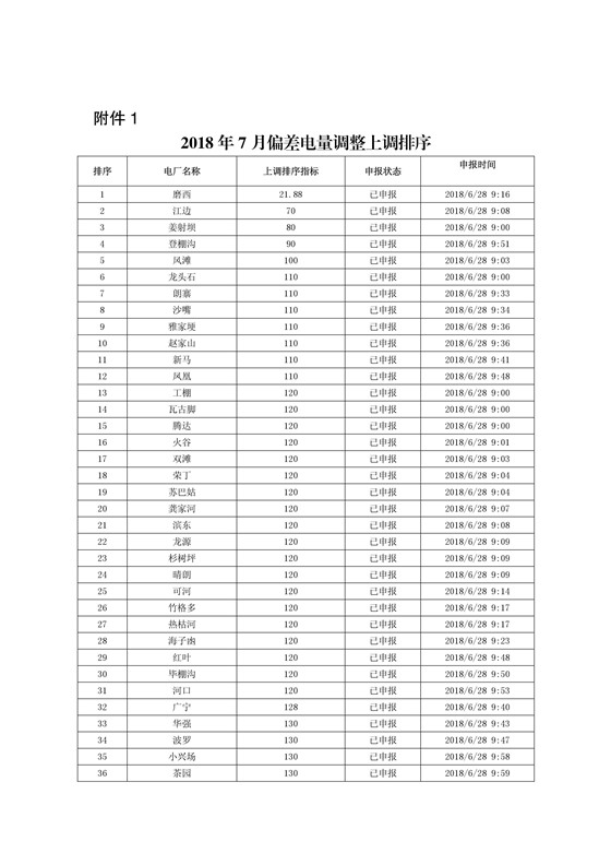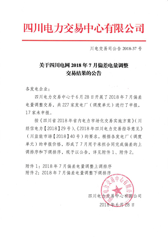 四川2018年7月偏差電量調(diào)整交易結(jié)果公布