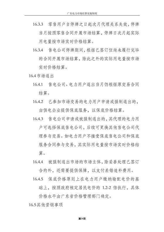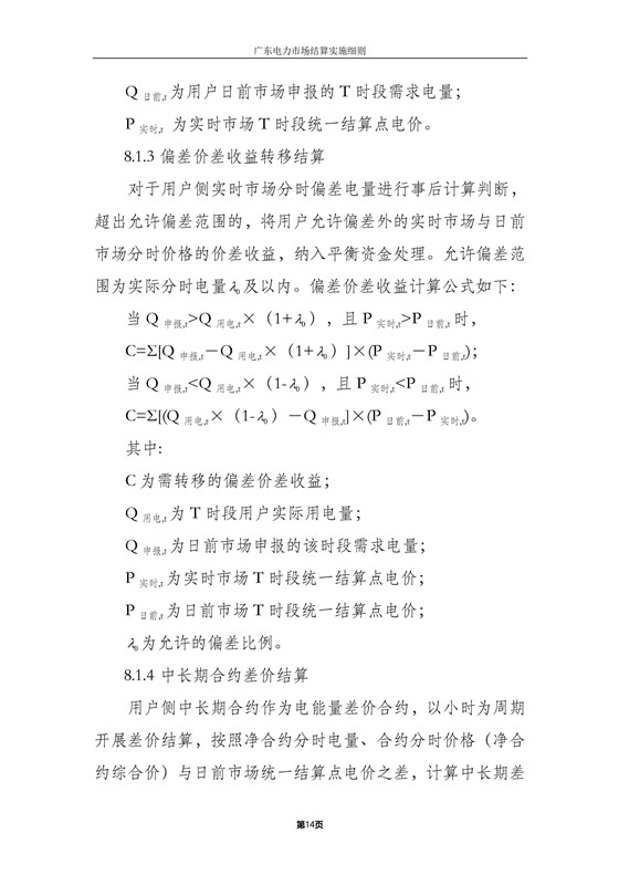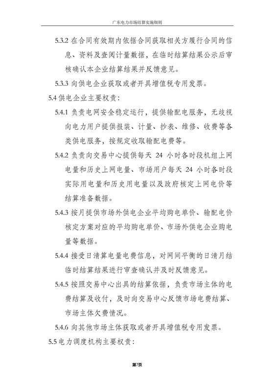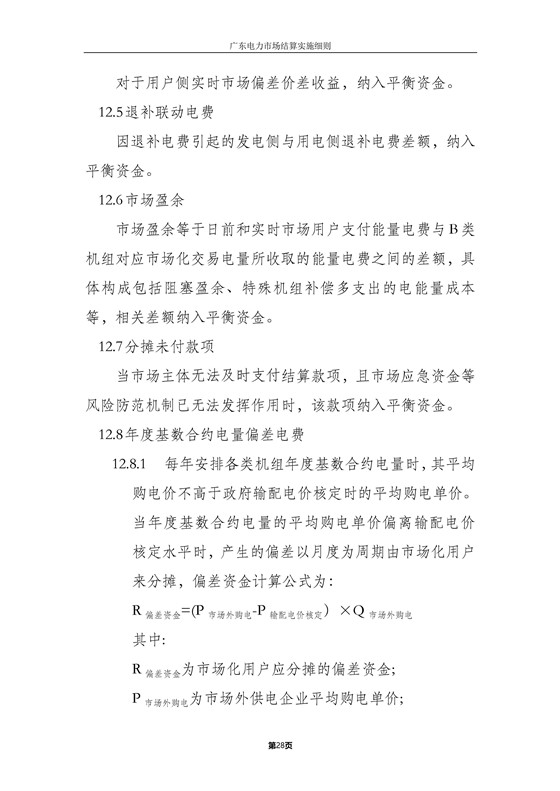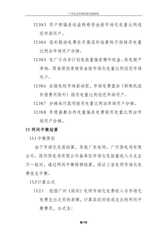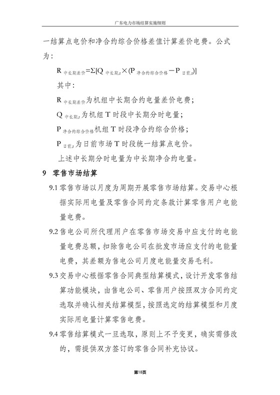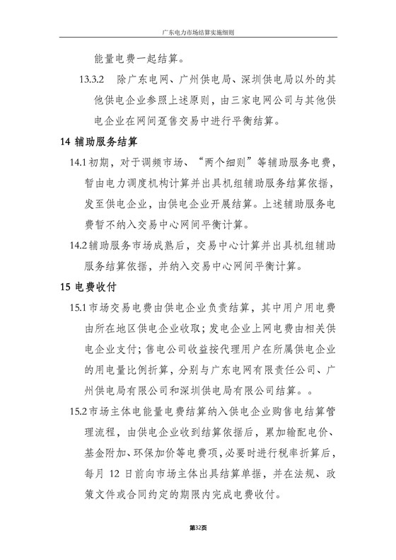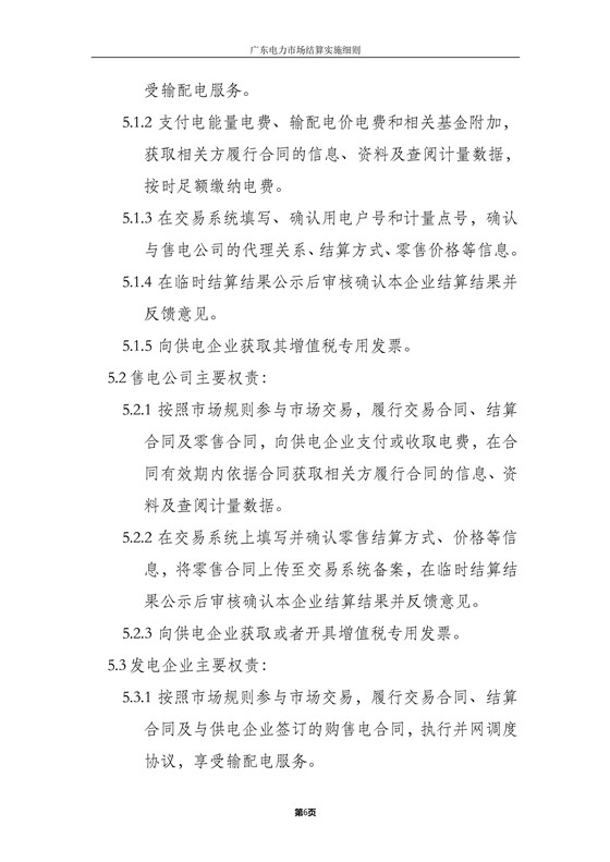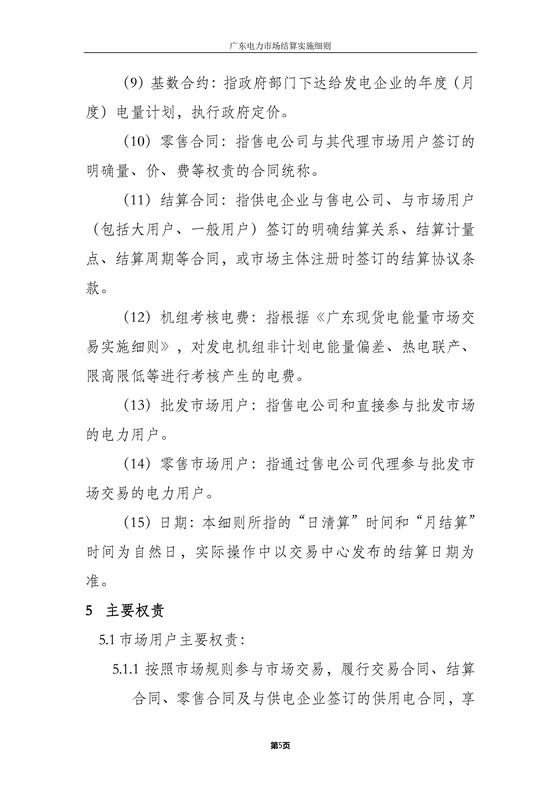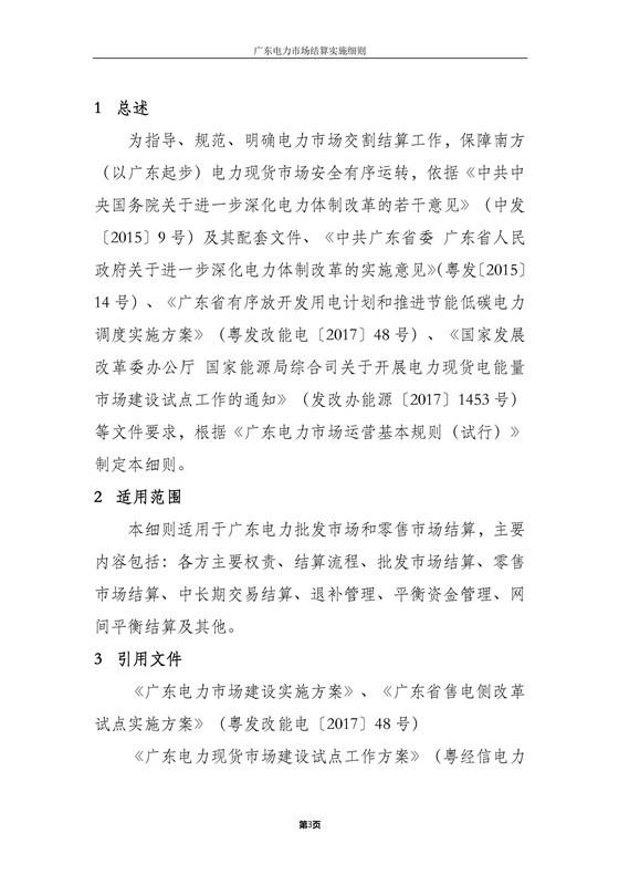 本細(xì)則適用于廣東電力批發(fā)市場(chǎng)和零售市場(chǎng)結(jié)算,主要內(nèi)容包括:各方主要權(quán)責(zé)、結(jié)算流程、批發(fā)市場(chǎng)結(jié)算、零售市場(chǎng)結(jié)算、中長(zhǎng)期交易結(jié)算、退補(bǔ)管理、平衡資金管理、網(wǎng)間平衡結(jié)算及其他。