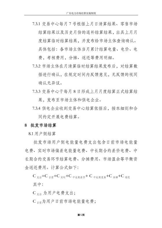 廣東電力市場(chǎng)結(jié)算實(shí)施細(xì)則(征求意見(jiàn)稿):電力批發(fā)市場(chǎng)采用“日清月結(jié)”結(jié)算模式