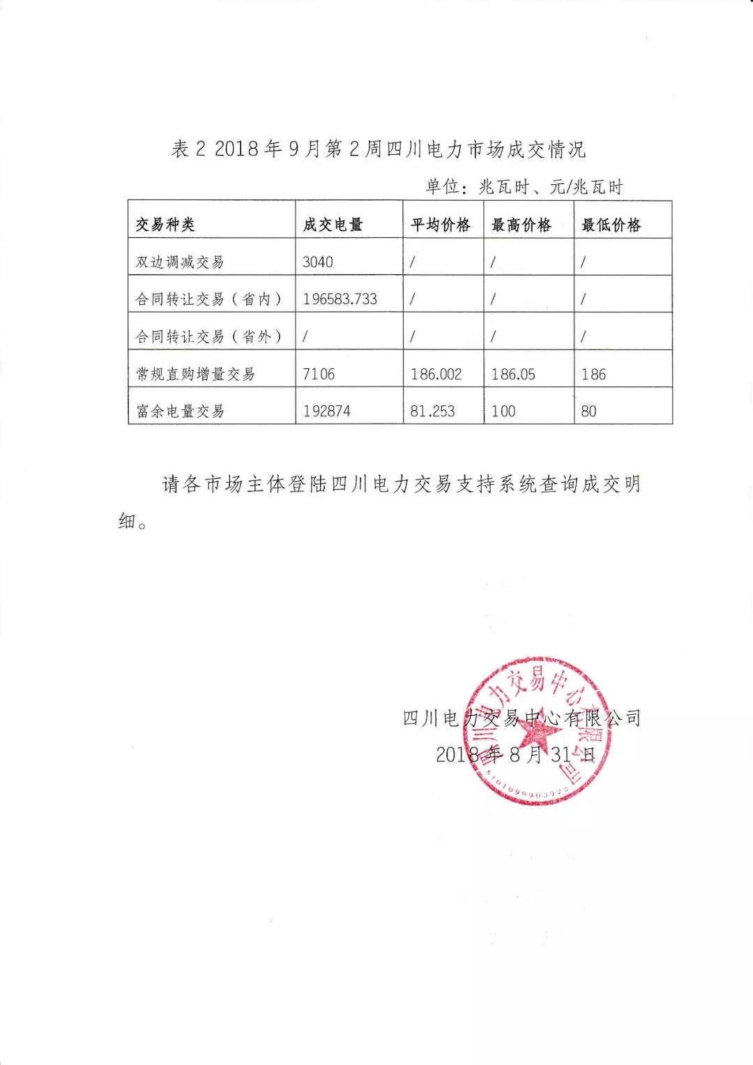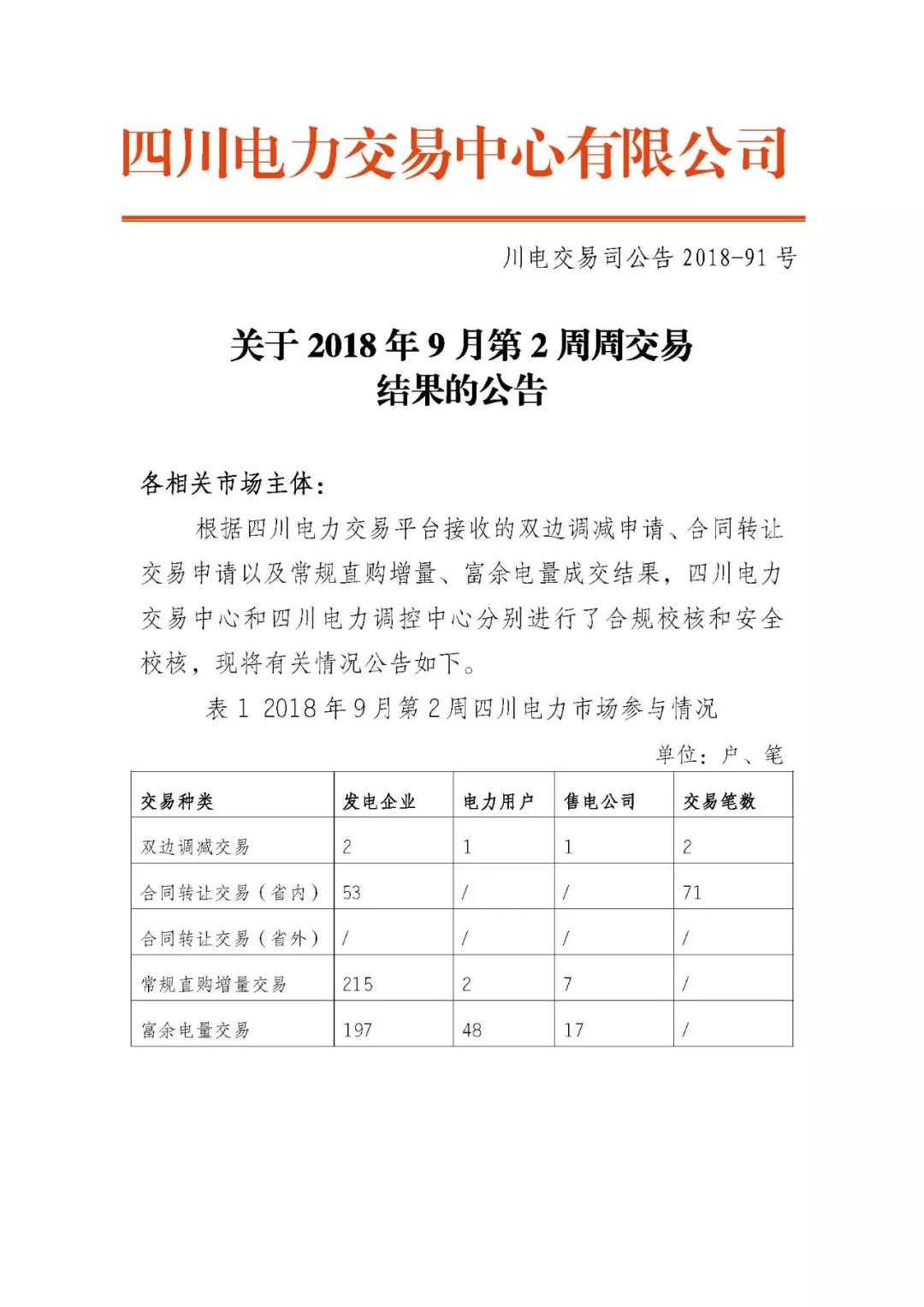 公告 | 四川關(guān)于2018年9月第2周周交易結(jié)果的公告