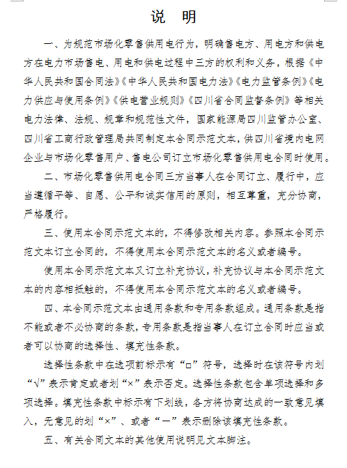 附:1.《四川省市場(chǎng)化零售供用電合同(示范文本)》
