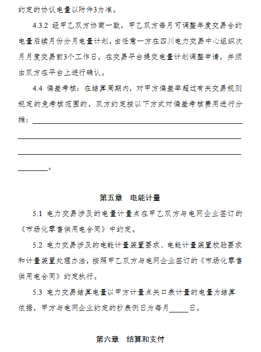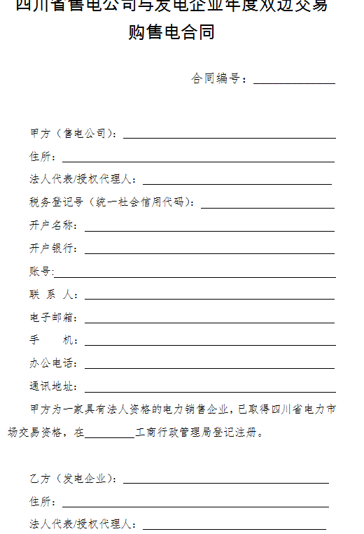 4.《四川省電力用戶與發(fā)電企業(yè)年度雙邊交易購(gòu)售電合同(示范文本)》