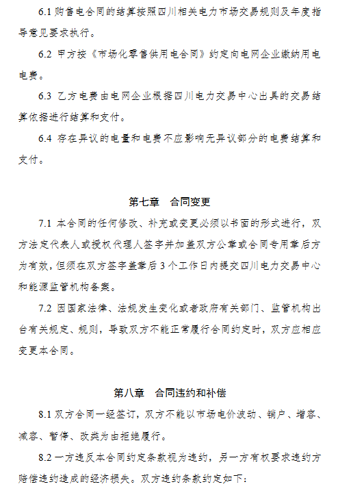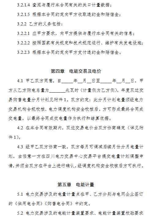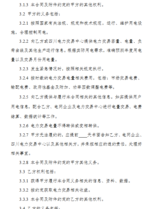3.《四川省售電公司與電力用戶購(gòu)售電合同(示范文本)》