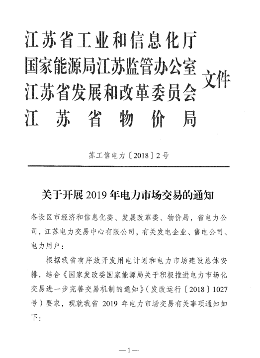 全文|3000億千瓦時(shí)!江蘇2019年電力市場(chǎng)交易規(guī)模確定 注冊(cè)綁定截止時(shí)間12月15日