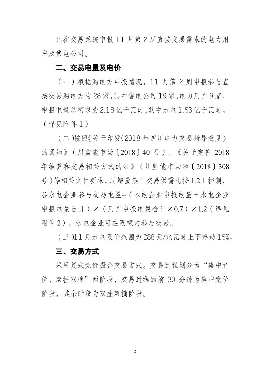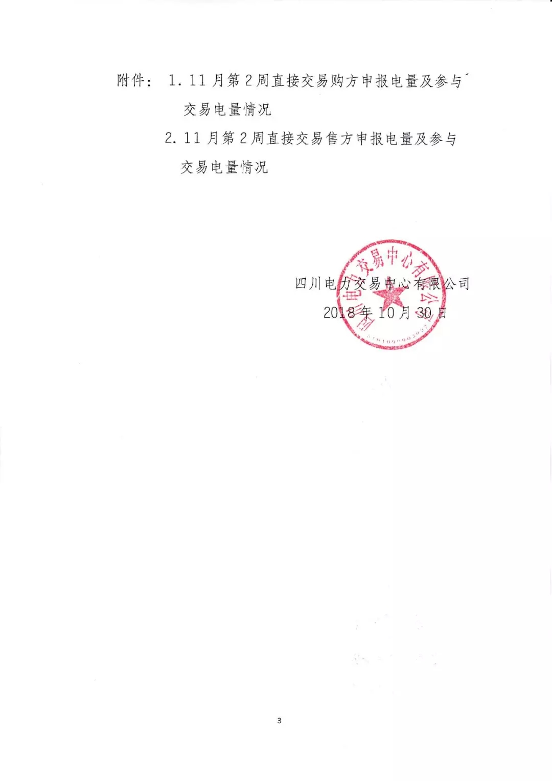 公告 | 四川關(guān)于開展2018年11月第2周直接交易的公告