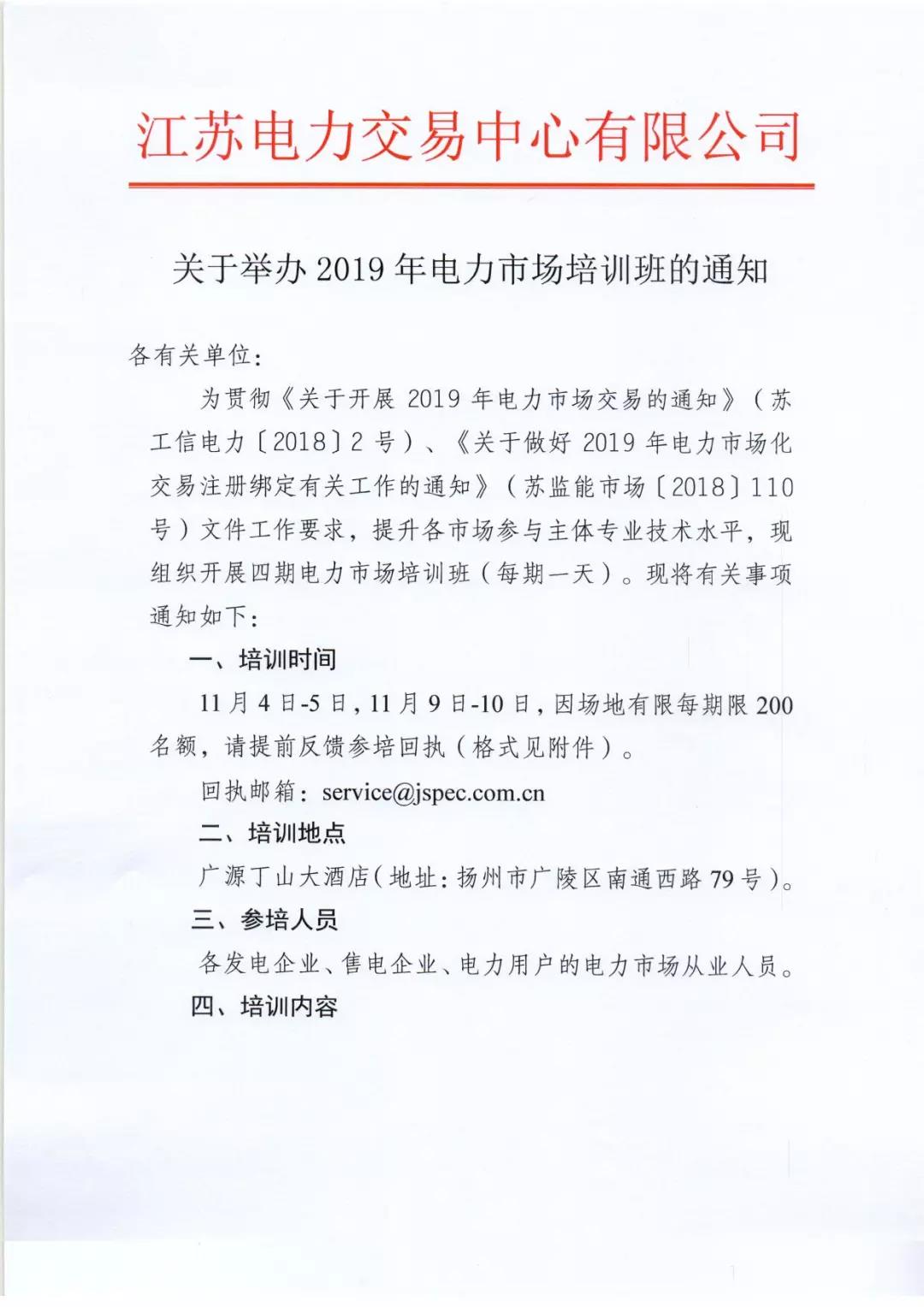 江蘇關于舉辦2019年電力市場培訓班的通知