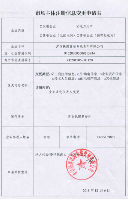 附件1:《市場(chǎng)主體注冊(cè)信息變更申請(qǐng)表(滬昆鐵路客運(yùn)專線貴州有限公司)》(另附)