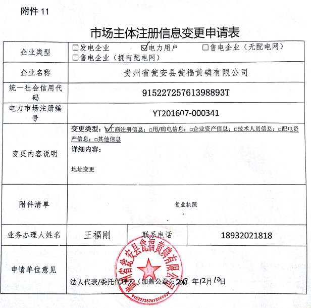 附件3:《市場(chǎng)主體注冊(cè)信息變更申請(qǐng)表(貴州省甕安縣甕福黃磷有限公司)》(另附)