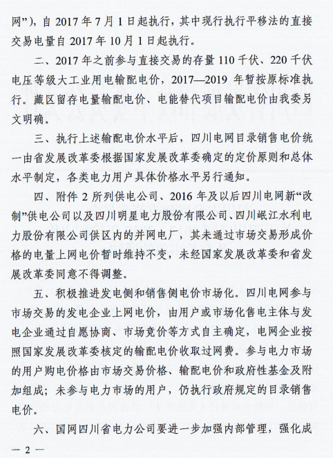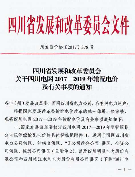 四川電網(wǎng)2017—2019年輸配電價(jià)發(fā)布