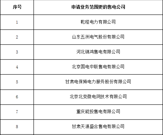 受理了14家售電公司的業(yè)務(wù)范圍更申請(qǐng),現(xiàn)將企業(yè)名單及基本情況予以公示。