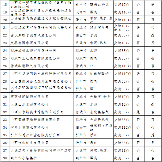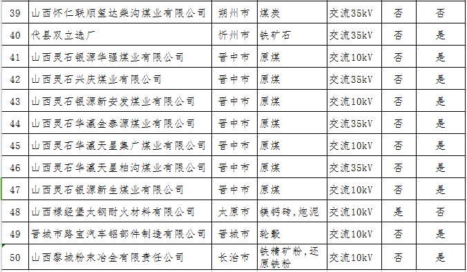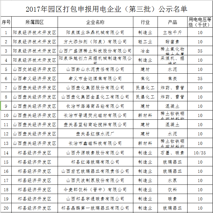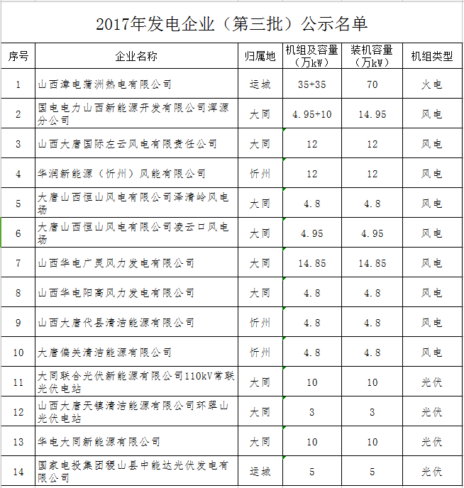 山西2017年電力直接交易發(fā)用電企業(yè)(第三批)公示名單