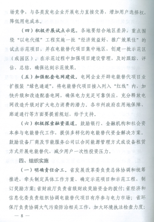 由湖南省發(fā)改委、湖南省能源局、湖南省經(jīng)信委、湖南省財(cái)政廳、湖南省環(huán)境保護(hù)廳、湖南省住房和城鄉(xiāng)建設(shè)廳、湖南省交通運(yùn)輸廳、湖南省質(zhì)量技術(shù)監(jiān)督局八部委聯(lián)合下發(fā)的《湖南省電能替代工作實(shí)施方案》印發(fā)。目標(biāo):