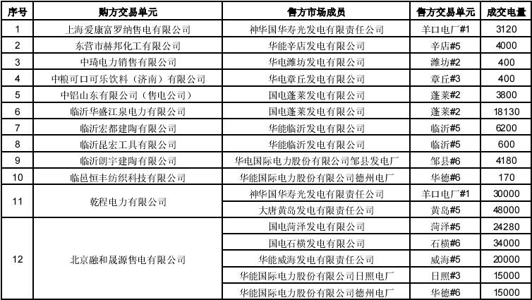 山東2017年10月份電力直接交易(雙邊協(xié)商)結(jié)果公布