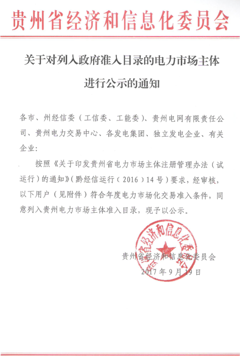 貴州準(zhǔn)入電力市場主體公示名單