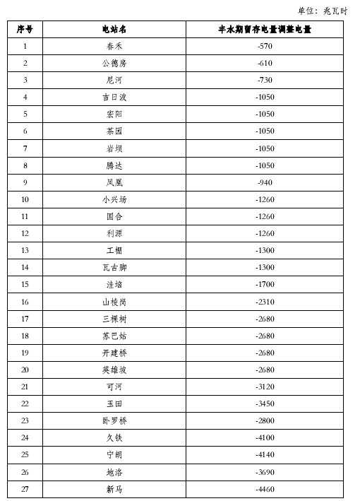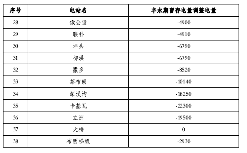 附件1:2017年涼山州豐水期留存電量計劃調(diào)減表