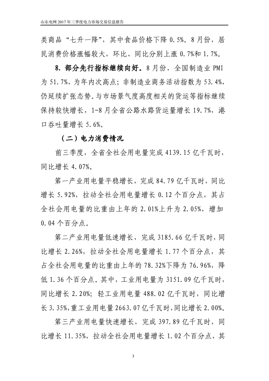 山東電網(wǎng)2017年三季度電力市場(chǎng)交易信息報(bào)告