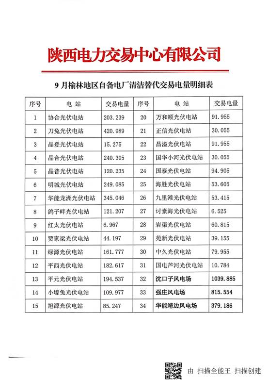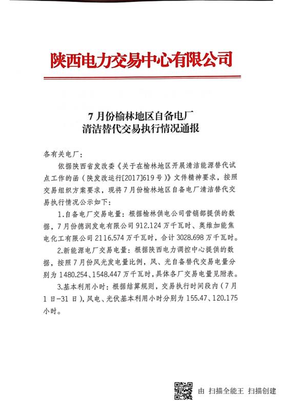 《7、8、9月份榆林地區(qū)自備電廠清潔能源交易執(zhí)行情況通報(bào)》
