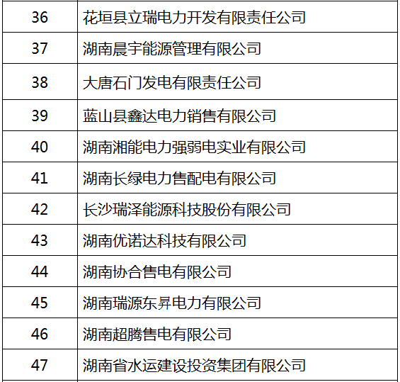 湖南省能源局11月14日發(fā)布了關(guān)于公示擬列入湖南省售電公司目錄第二批企業(yè)名單的通知,通知中對符合條件的57家企業(yè)列入湖南省售電公司目錄,公示期為2017年11月14日至12月14日。至此,詳情如下: