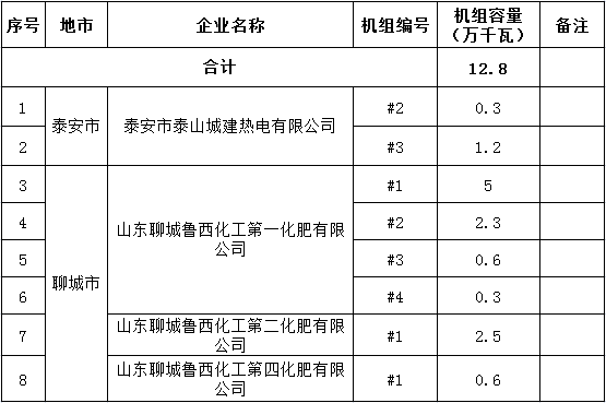 近日山東省發(fā)改委公布了《山東省2017年電力行業(yè)淘汰落后產(chǎn)能企業(yè)名單(第二批)公示》,涉及4個(gè)企業(yè)8臺(tái)機(jī)組,共計(jì)12.8萬千瓦。具體情況如下: