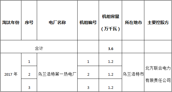 關(guān)于2017年電力行業(yè)淘汰落后產(chǎn)能關(guān)停情況的公告