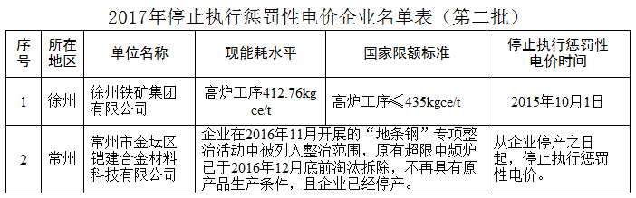 2.2017年停止執(zhí)行懲罰性電價(jià)企業(yè)名單表(第二批)