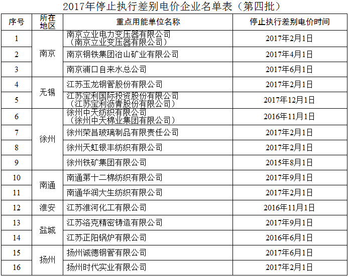 附件:1.2017年停止執(zhí)行差別電價(jià)企業(yè)名單表(第四批)