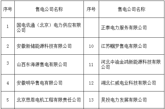 冀北公示26家售電公司