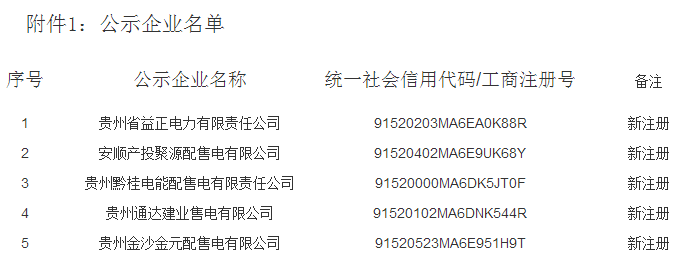 貴州新公示益正電力有限責(zé)任公司等5家售電公司
