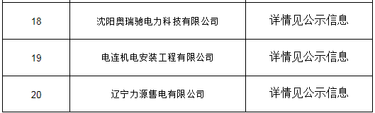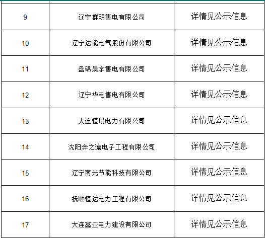 公示期間,任何單位和個人如有異議,可以實名通過來電、來信、來訪等方式向遼寧電力交易中心反映。本次公示售電公司目錄如下: