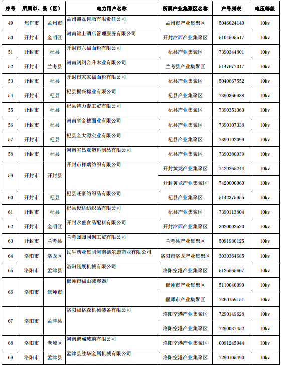 河南新公示第六批212家電力用戶(hù)(附名單)