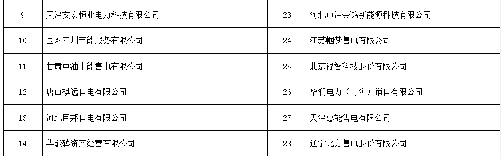 公示期為2017年12月01日至2017年12月30日,時(shí)間為1個(gè)月。本次公示售電公司目錄如下: