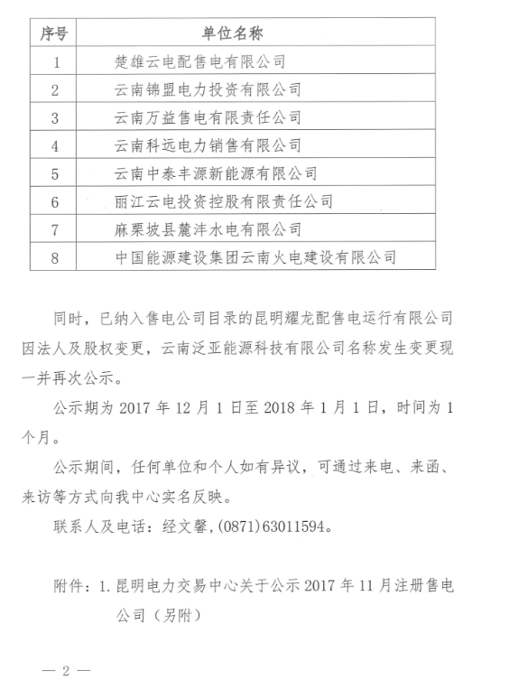 云南新公示8家售電公司