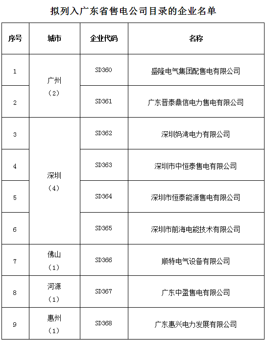 廣東新增9家售電公司(第十二批)
