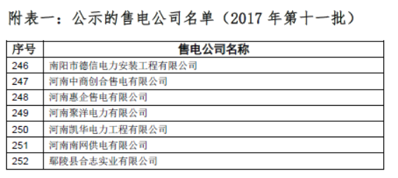 河南新公示9家售電公司 變更1家售電公司注冊(cè)信息(第十三批)