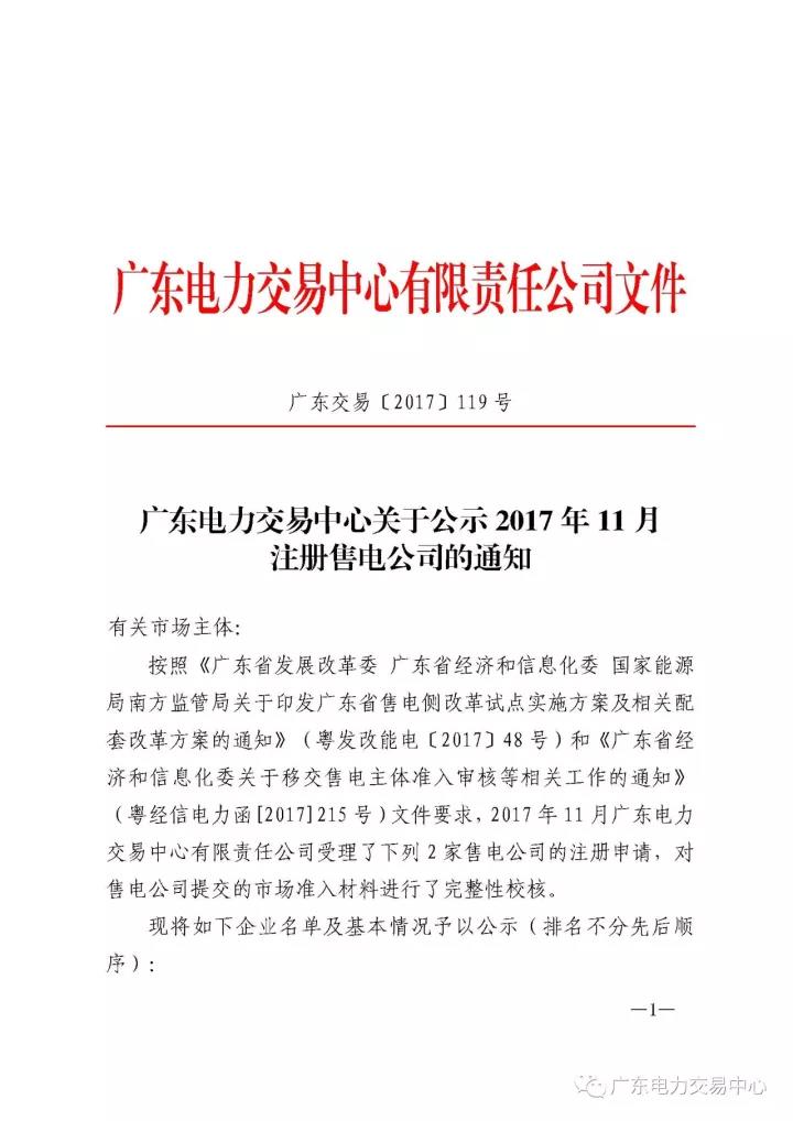 為做好售電公司的準(zhǔn)入審核等相關(guān)工作,廣東電力交易中心現(xiàn)對11月注冊申請的2家售電公司進行公示,公示正文如下: