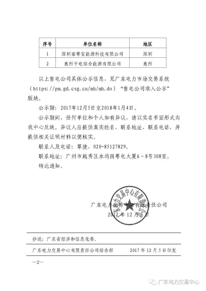 廣東新公示2家售電公司(11月)