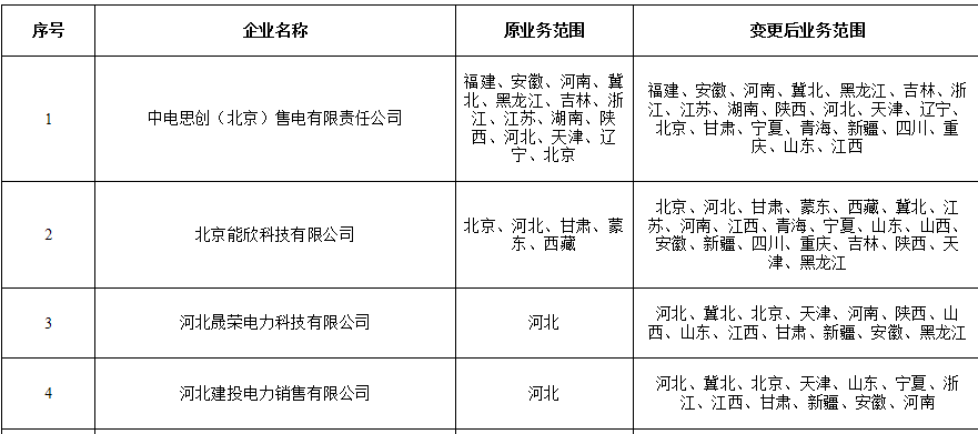 北京公示9家業(yè)務(wù)范圍變更的售電公司相關(guān)信息的公告