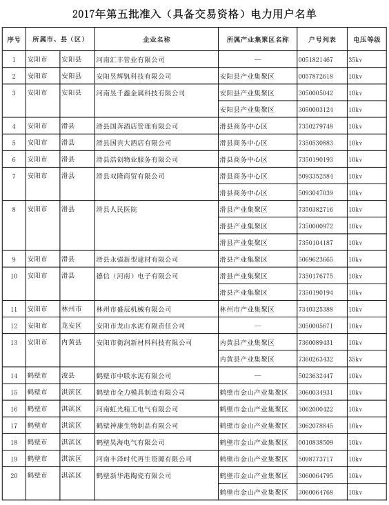 河南第五批準(zhǔn)入294家電力用戶名單 另有17家電力用戶未通過(guò)審核
