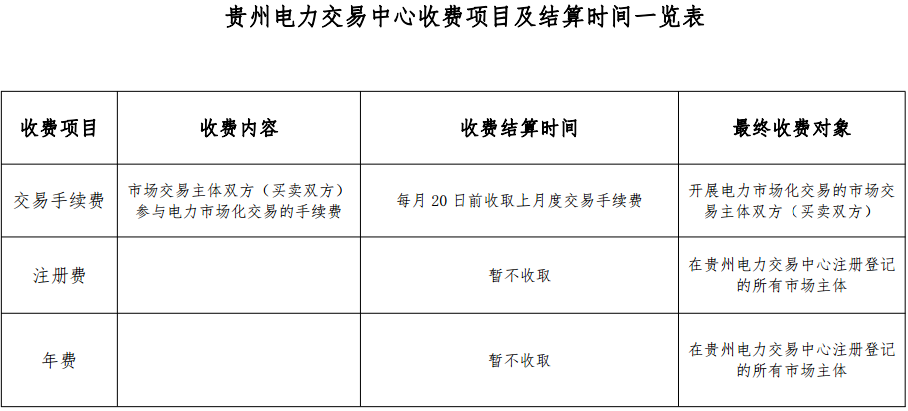 3、貴州電力交易中心收費項目及結(jié)算時間一覽表