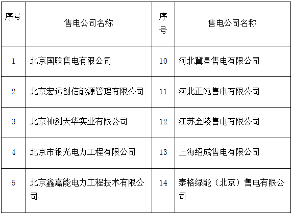 冀北電力交易中心關(guān)于受理注冊的售電公司公示相關(guān)信息的公告 共計27家售電公司