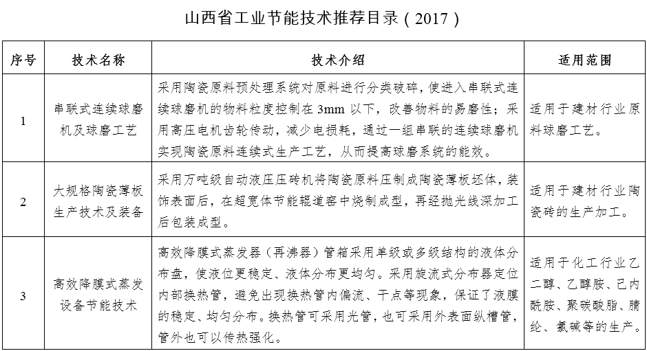附件:山西省工業(yè)節(jié)能技術(shù)推薦目錄(2017)