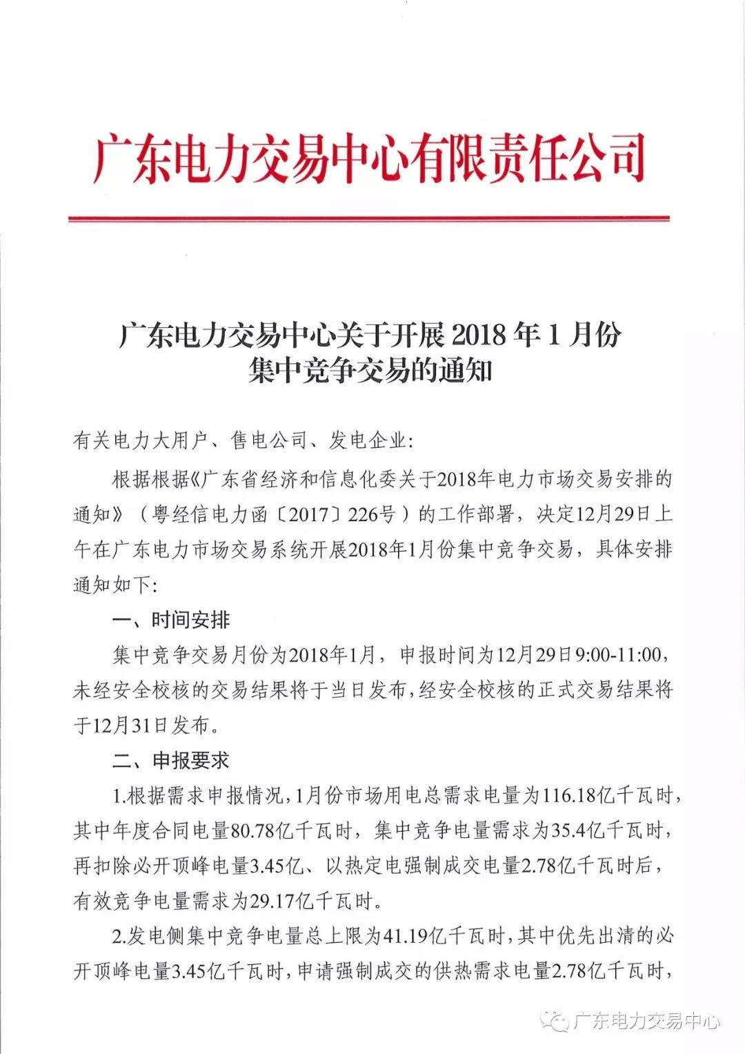 廣東2018年1月集中競爭交易29日上午展開
