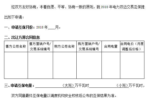 原標題:關于2018年雙邊合同電量互保有關事項的通知
