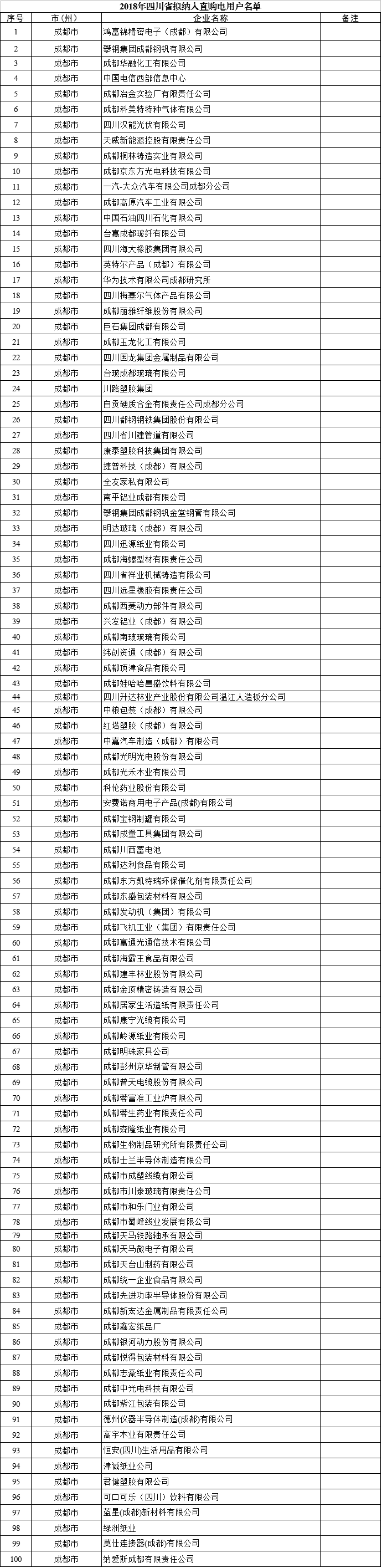 2018年四川省電力直接交易用戶名單再次公示