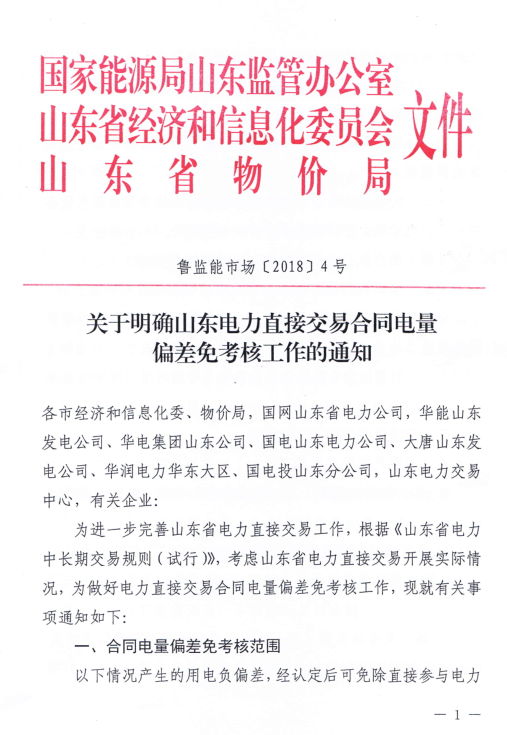 國家能源局山東監(jiān)管辦、山東省經(jīng)信委、山東省物價局日前聯(lián)合發(fā)布了《關(guān)于明確山東電力直接交易合同電量偏差免考核工作的通知》,通知中明確