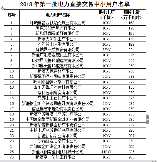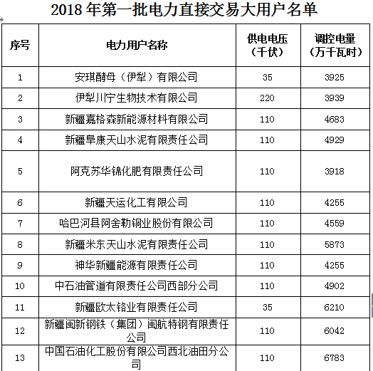 新疆公布2018年上半年注冊直接交易市場成員:55家大用戶 332家中小用戶