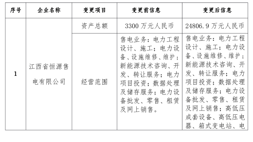 江西新公示1家注冊(cè)信息變更的售電公司