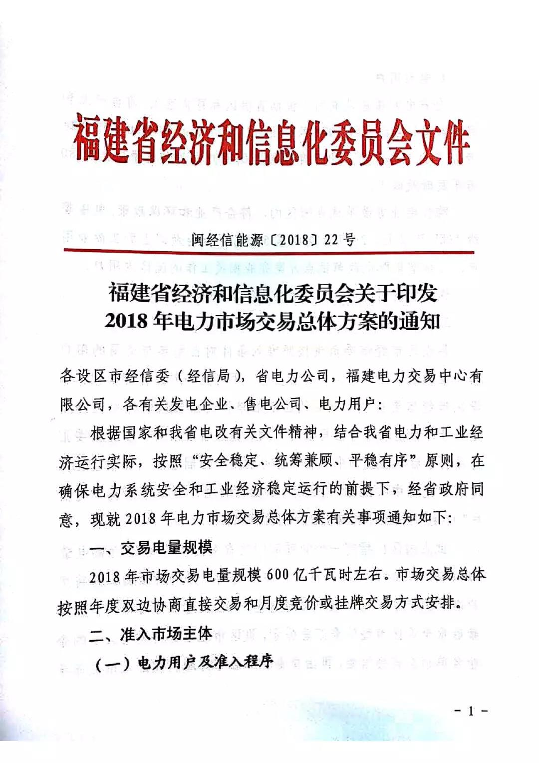 福建省經(jīng)信委日前印發(fā)了《2018年電力市場交易總體方案》,方案中稱,2018年福建省市場交易電量規(guī)模在600億千瓦時(shí)左右,市場交易總體按照年